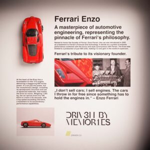 This art frame honors the Ferrari Enzo, a masterpiece that channels Maranello’s Formula 1 heritage into a road car. Its carbon-fiber body, radical aerodynamics, and V12 symphony defined the Enzo as the pinnacle of early 2000s performance.