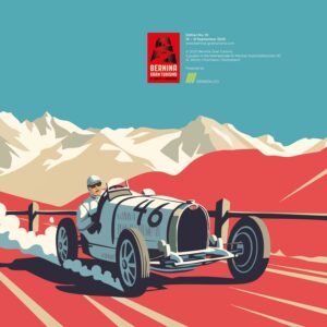 This piece portrays the Bugatti No. 46, a legendary competitor on the Bernina Pass in the late 1920s. Its elegant silhouette, reimagined as a custom illustration, captures the raw energy and timeless lines of early motorsport. Limited to just 5 pieces, each frame is individually numbered, preserving its rarity for collectors.